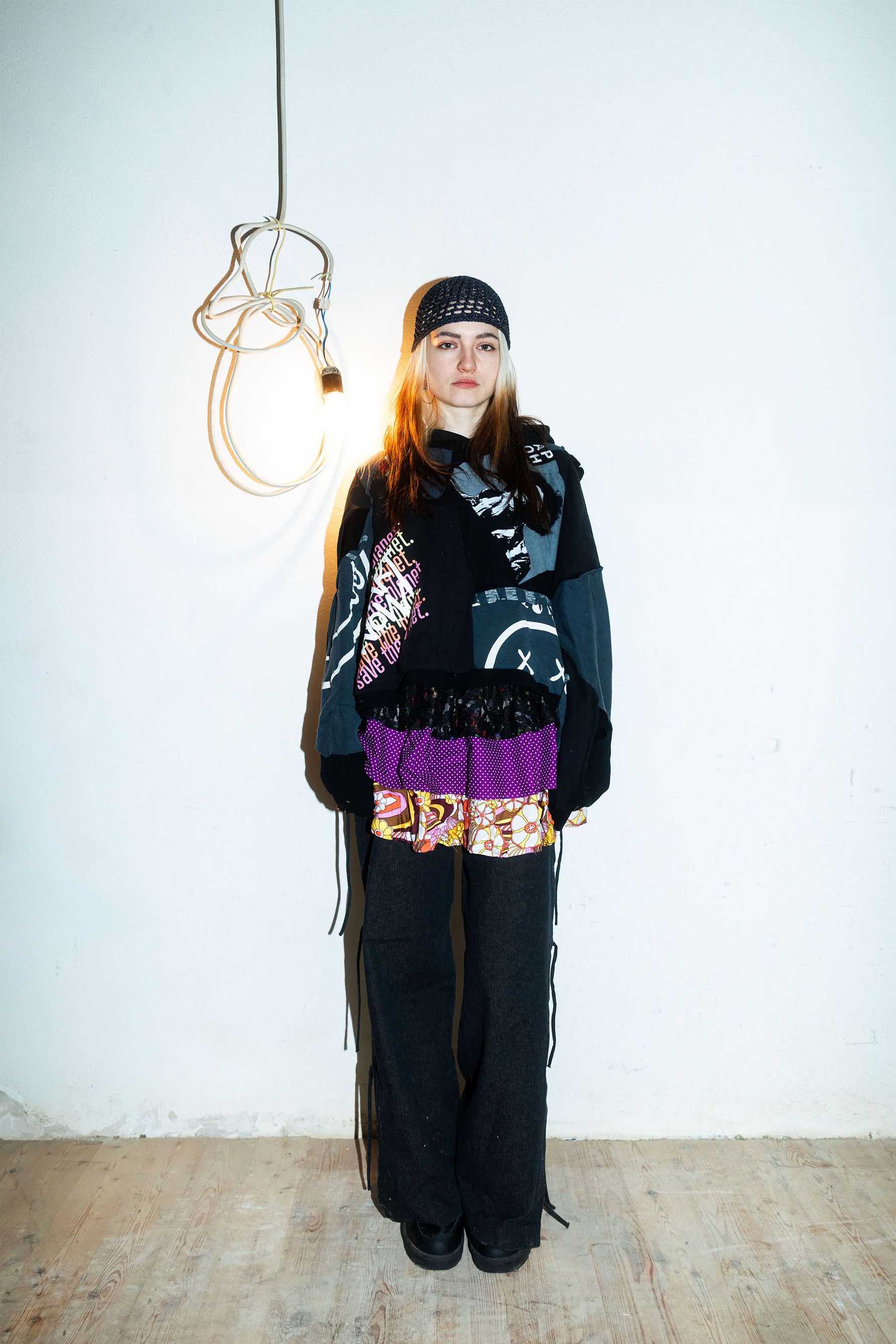 The approach was not only to create a rebellious look inspired by the unconventional style of my co-creator, but also to design garments that are versatile and comfortable—adaptable to the challenges and transformations that life may bring, including changes in the form of the body.