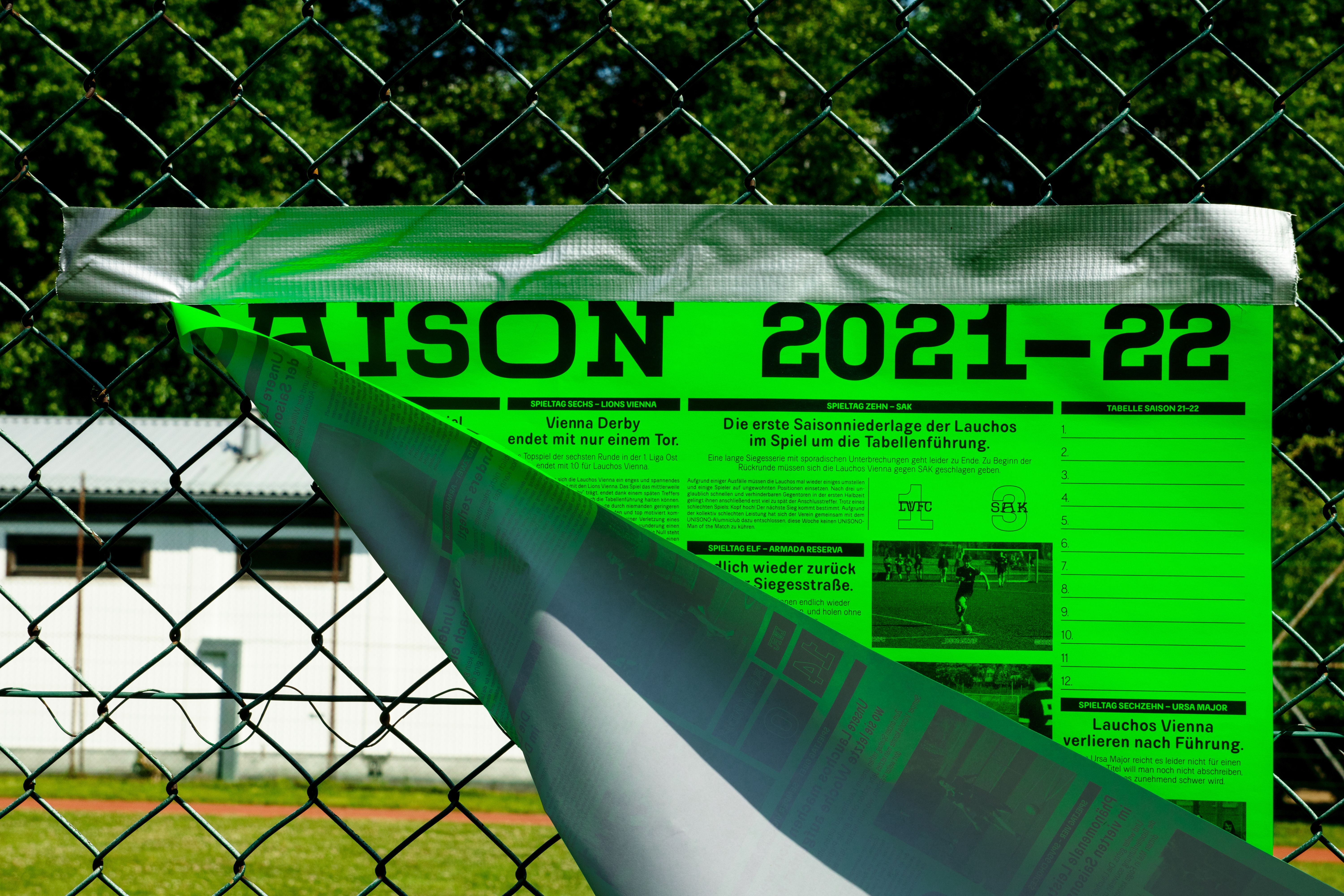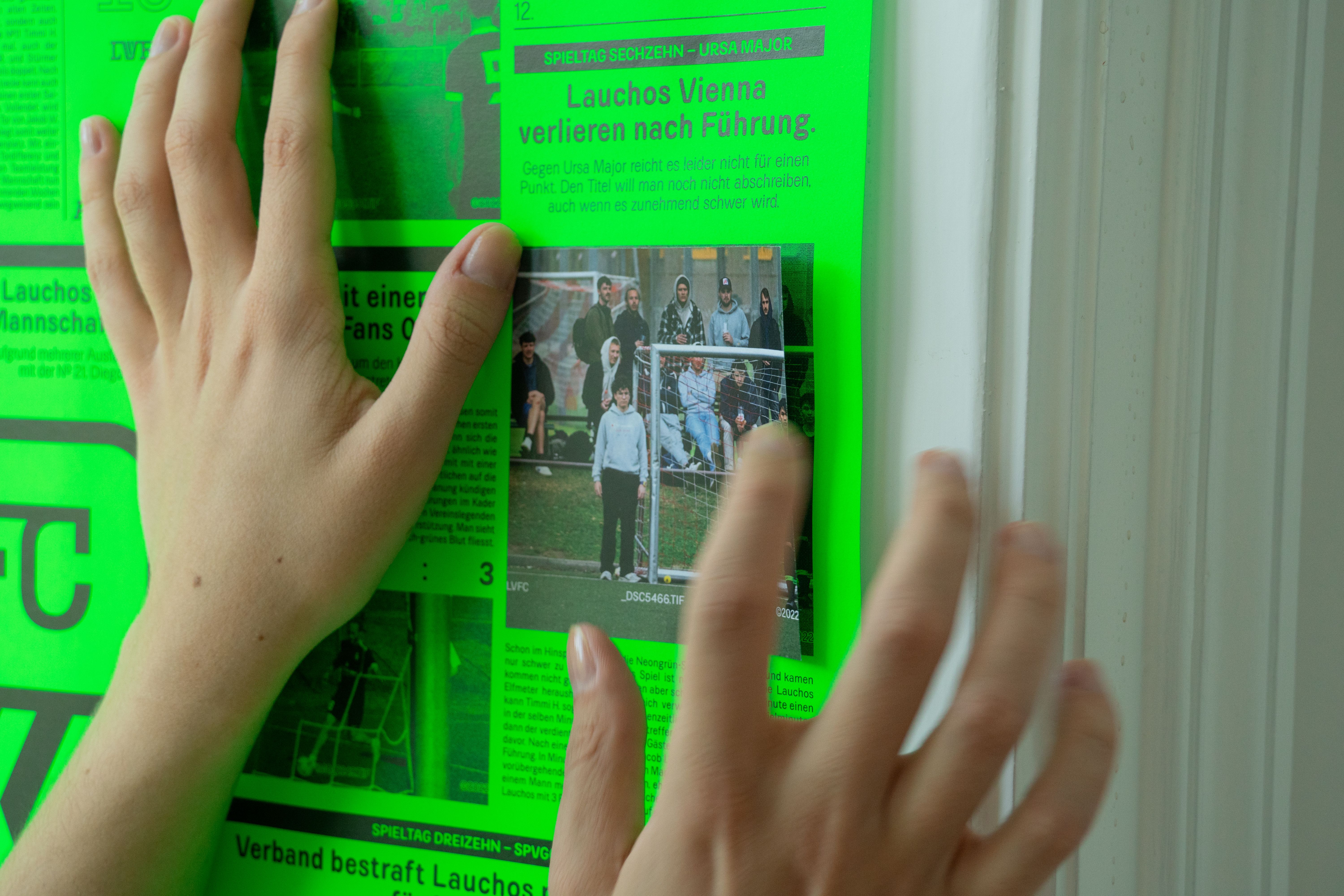 To finish the project I curated a limited edition book with pictures all taken during games of the recent seasons games celebrating our 5-year-anniversary this year and giving players, fans, friends and family to be part of it by also selling a panini-like poster in neon-green, where small pictures of our team can be added.